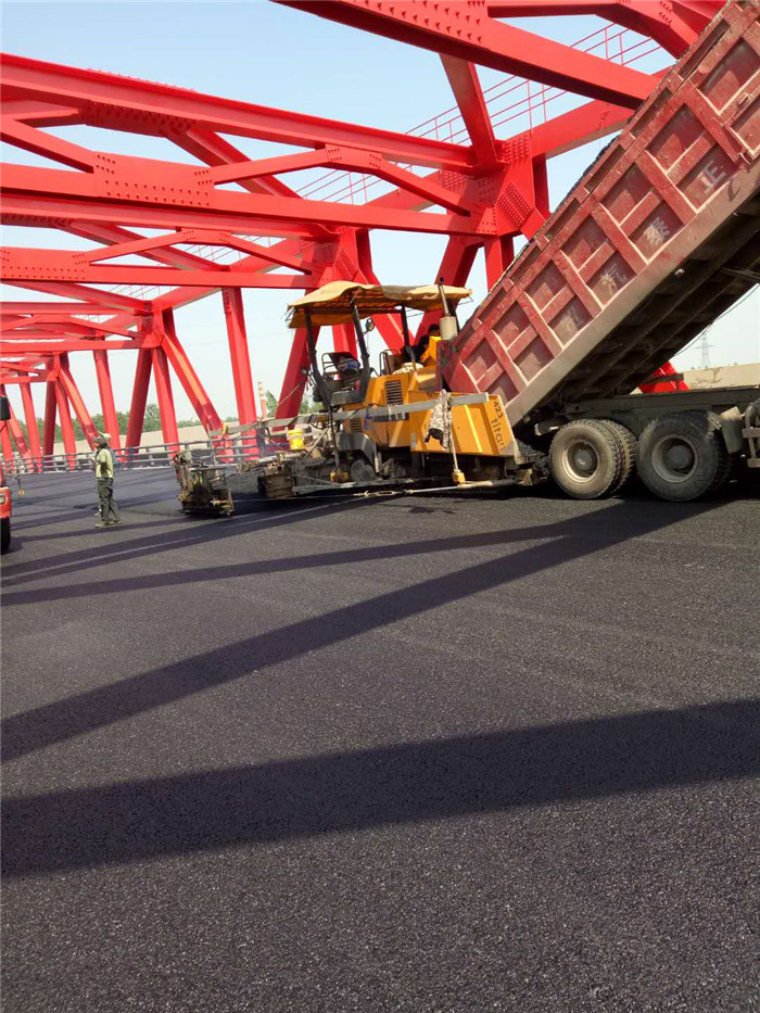 338線火頭灣大橋與延線道路瀝青砼攤鋪案例,本圖為正在施工攤鋪瀝青砼現(xiàn)場(chǎng)